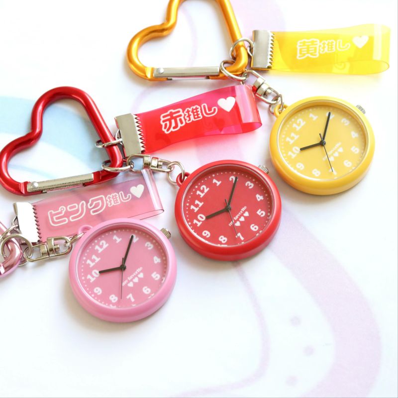 PVCチャームとハートのカラビナが可愛い推しカラーウォッチ。