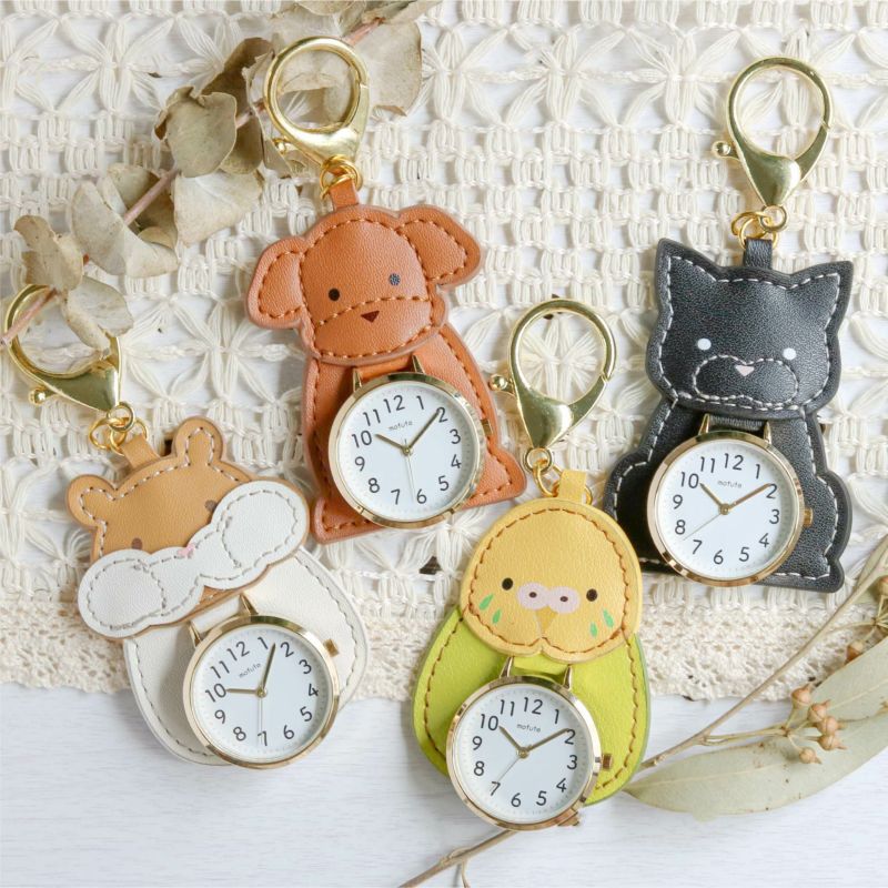 キュートなアニマルモチーフのキーチェーンウォッチ。大きめフックで色んなところに付けられます。