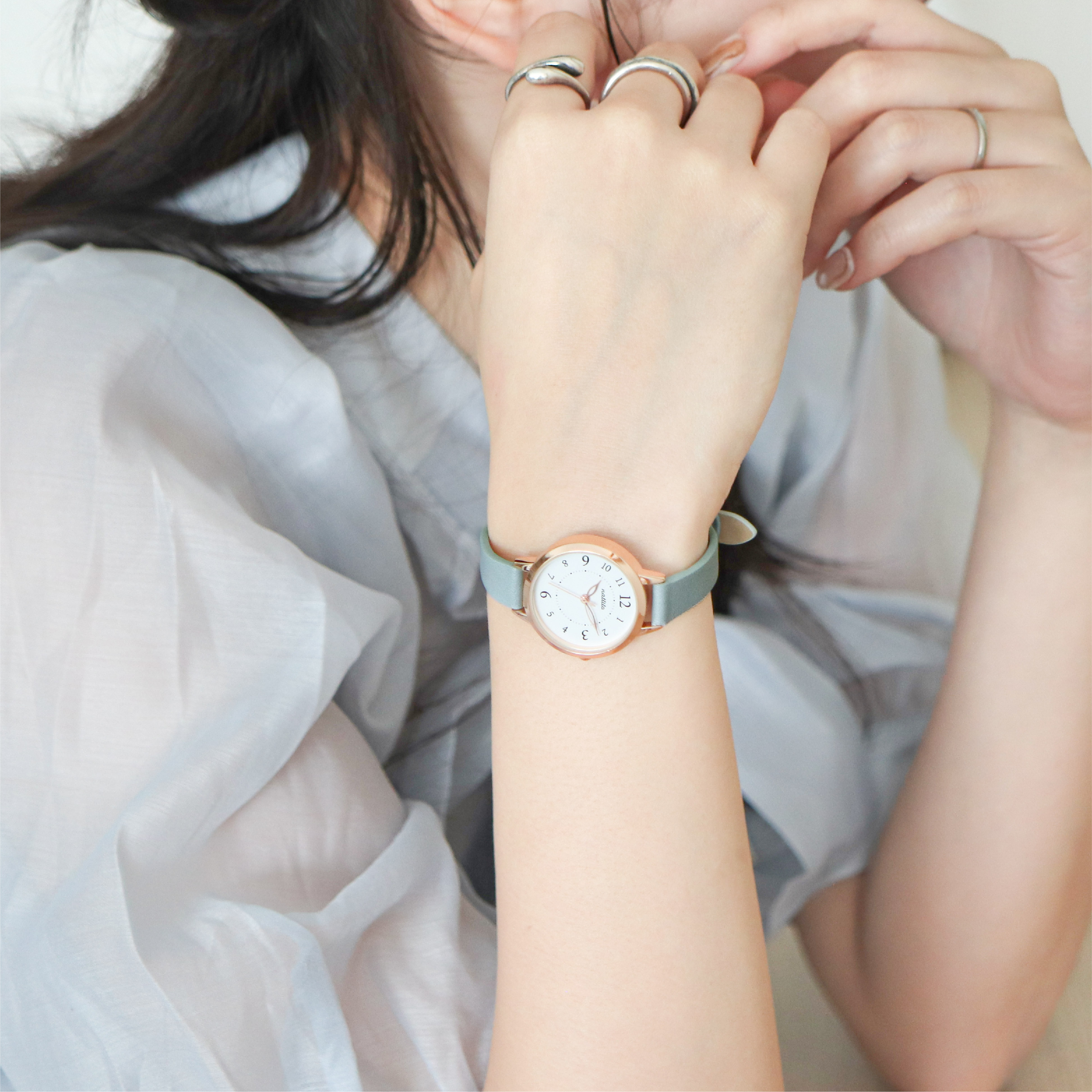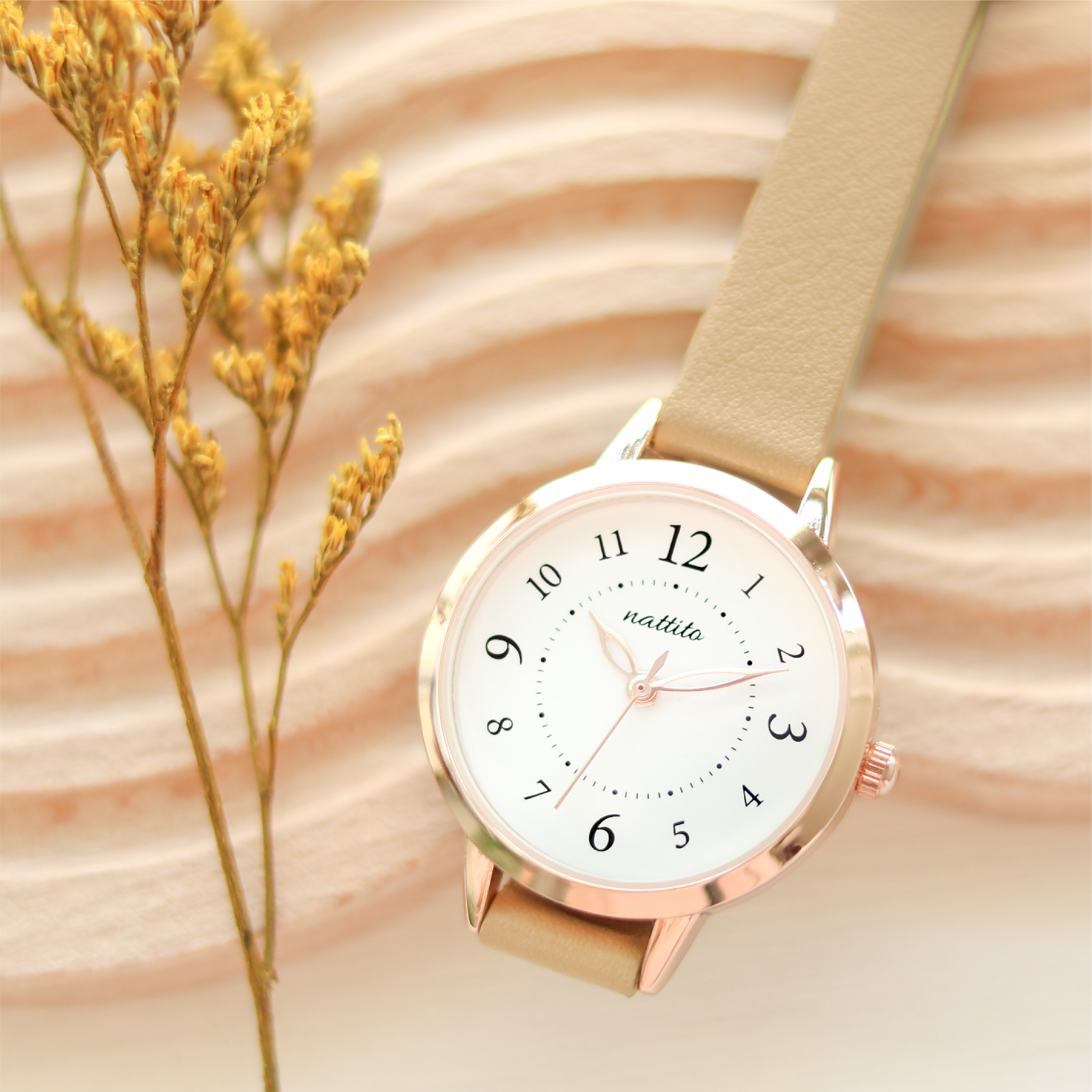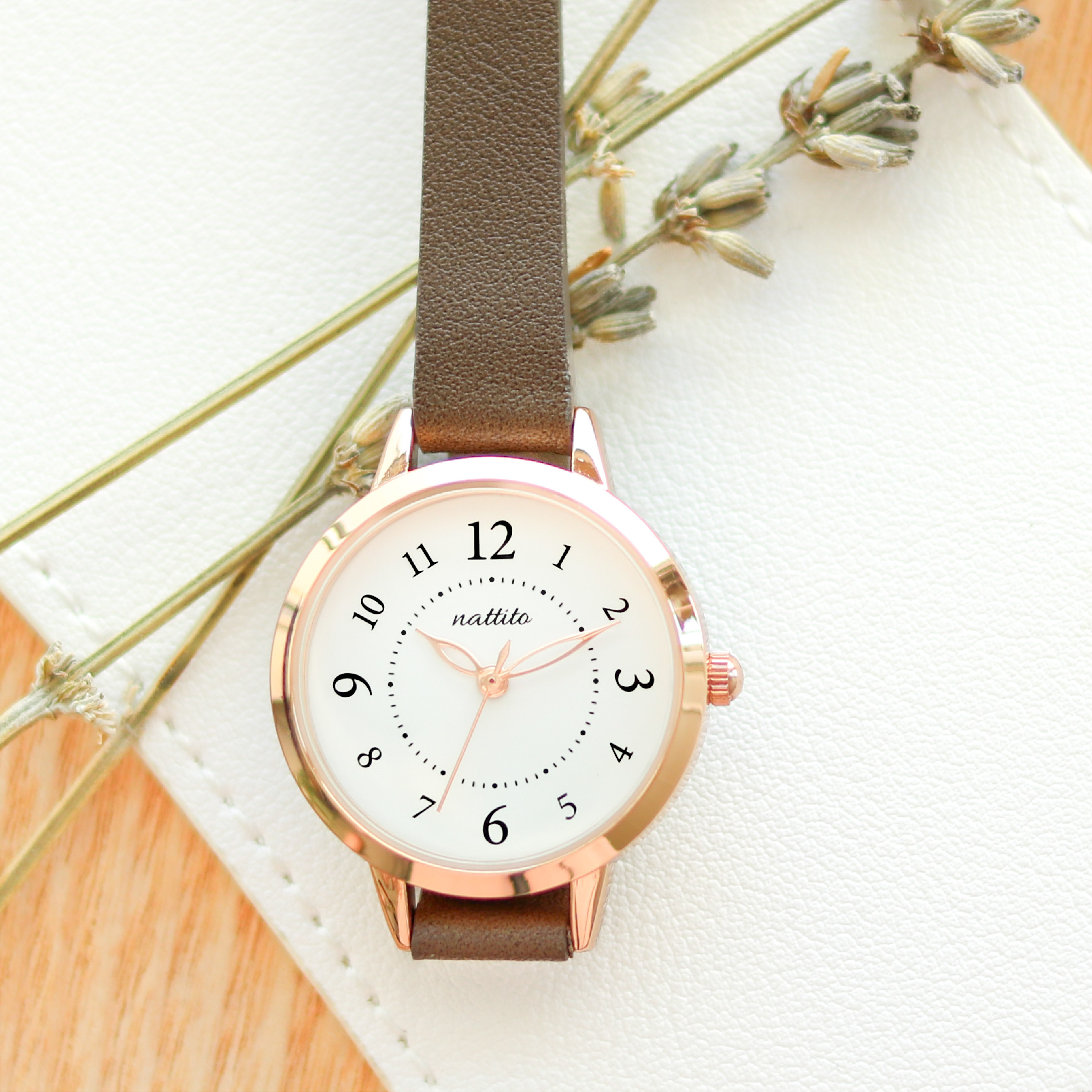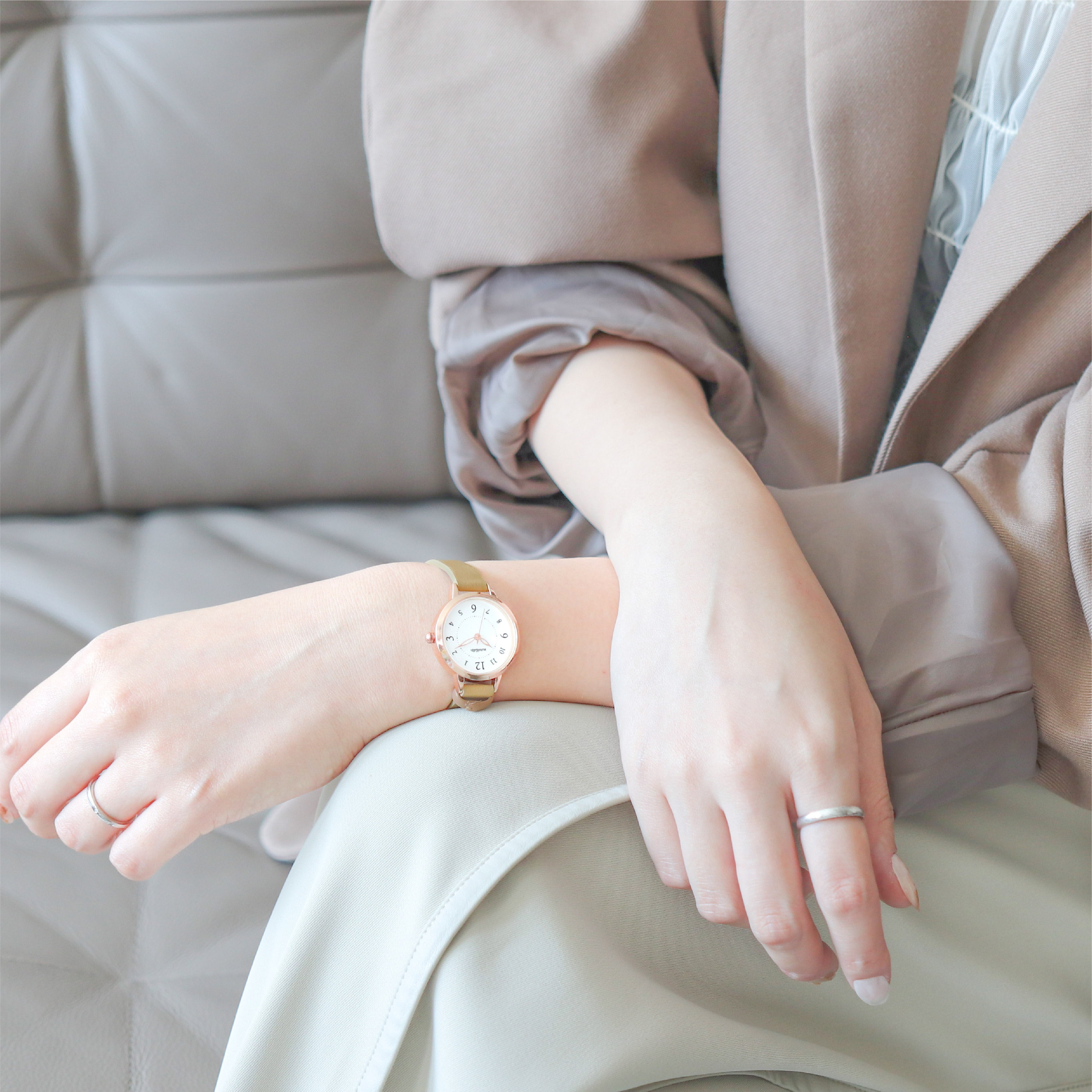 ほんのり配色されたベルトループがおしゃれなシンプルレザーウォッチ