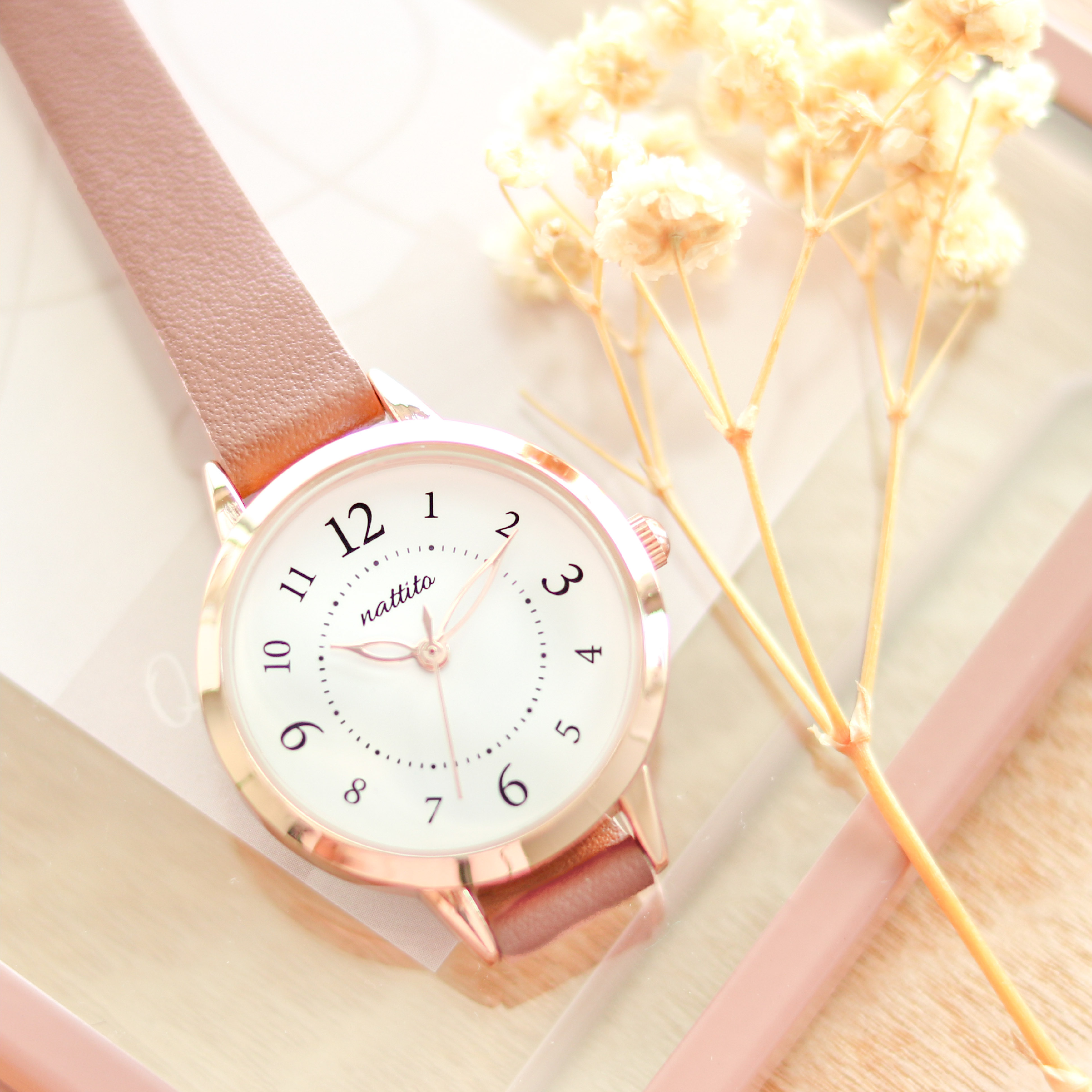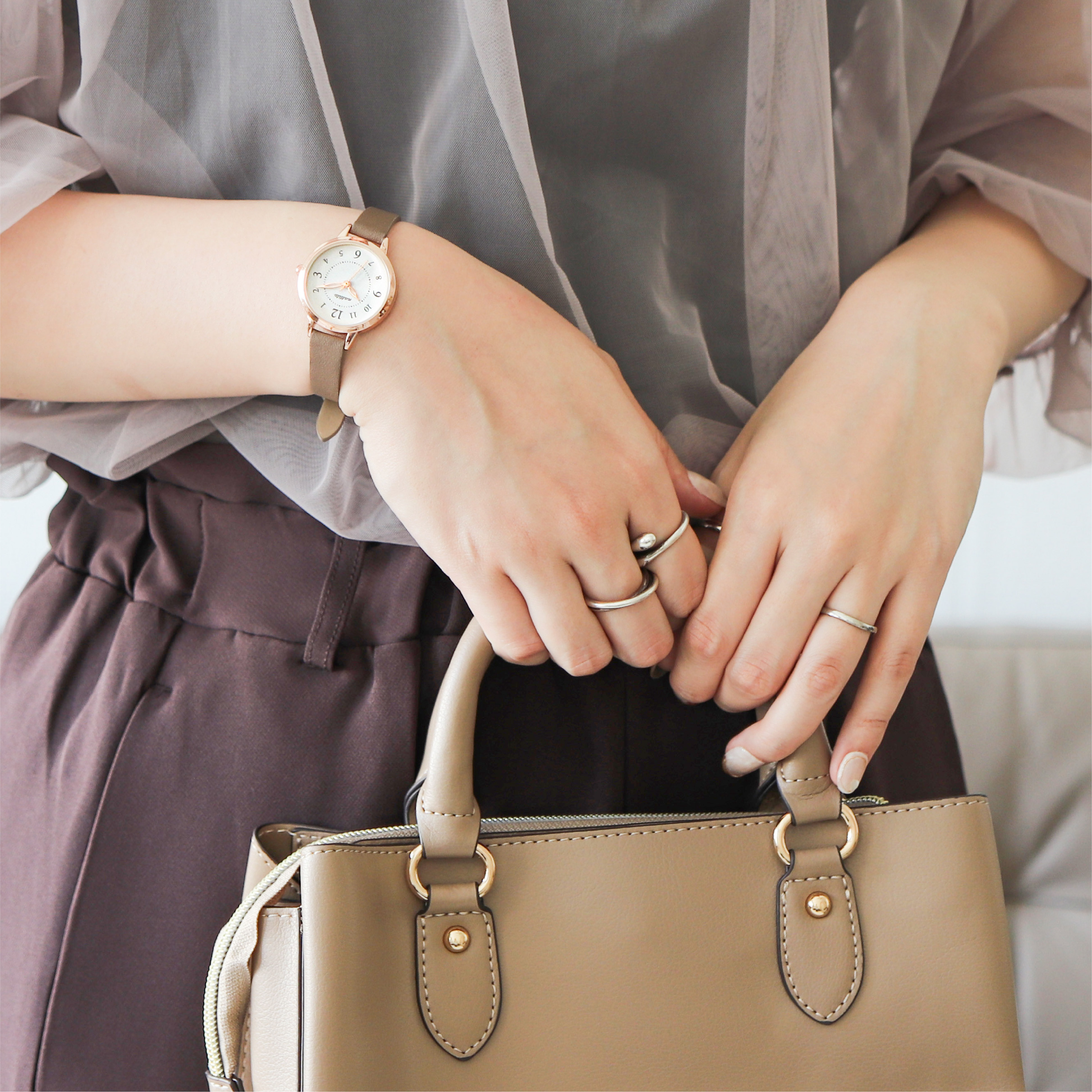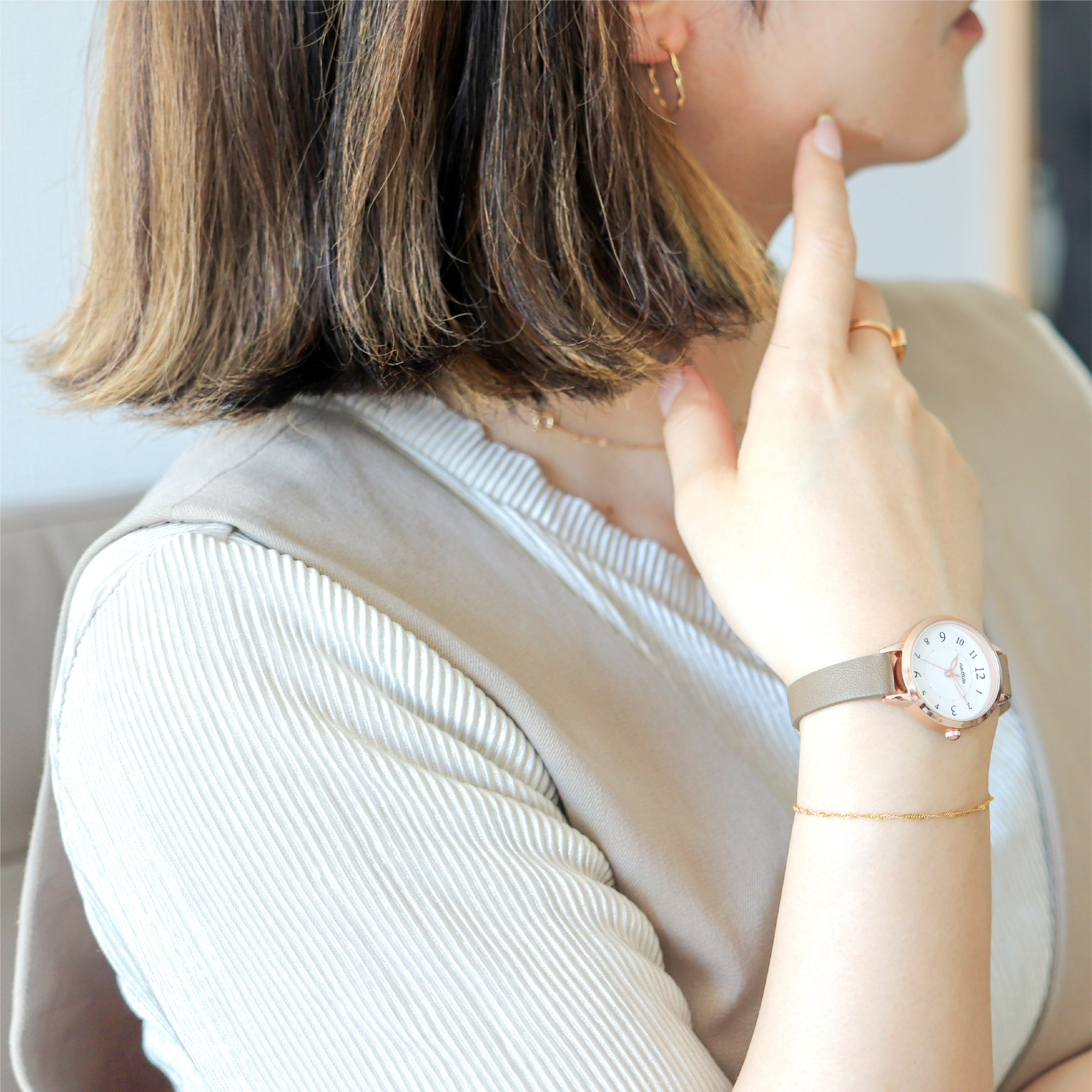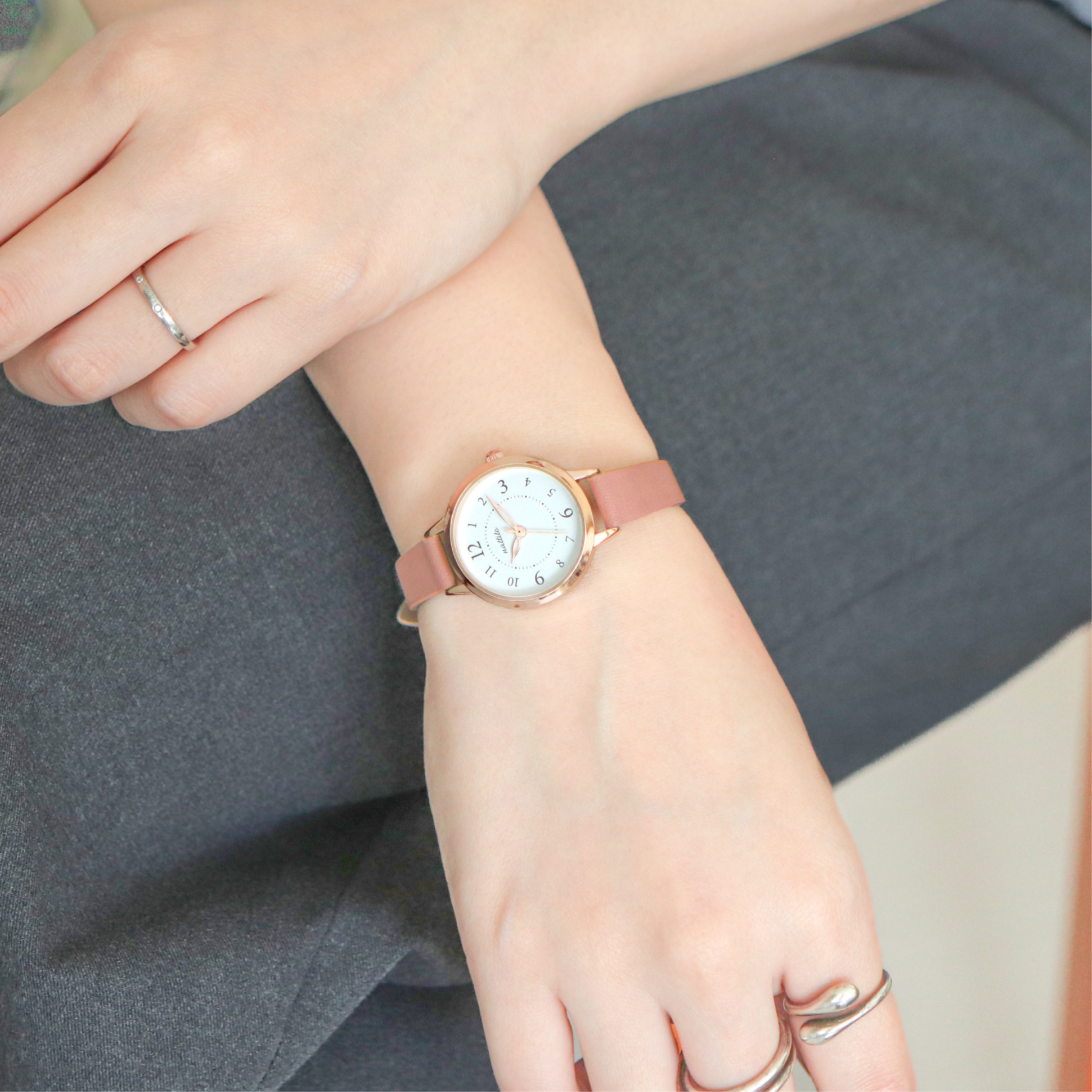 ほんのり配色されたベルトループがおしゃれなシンプルレザーウォッチ