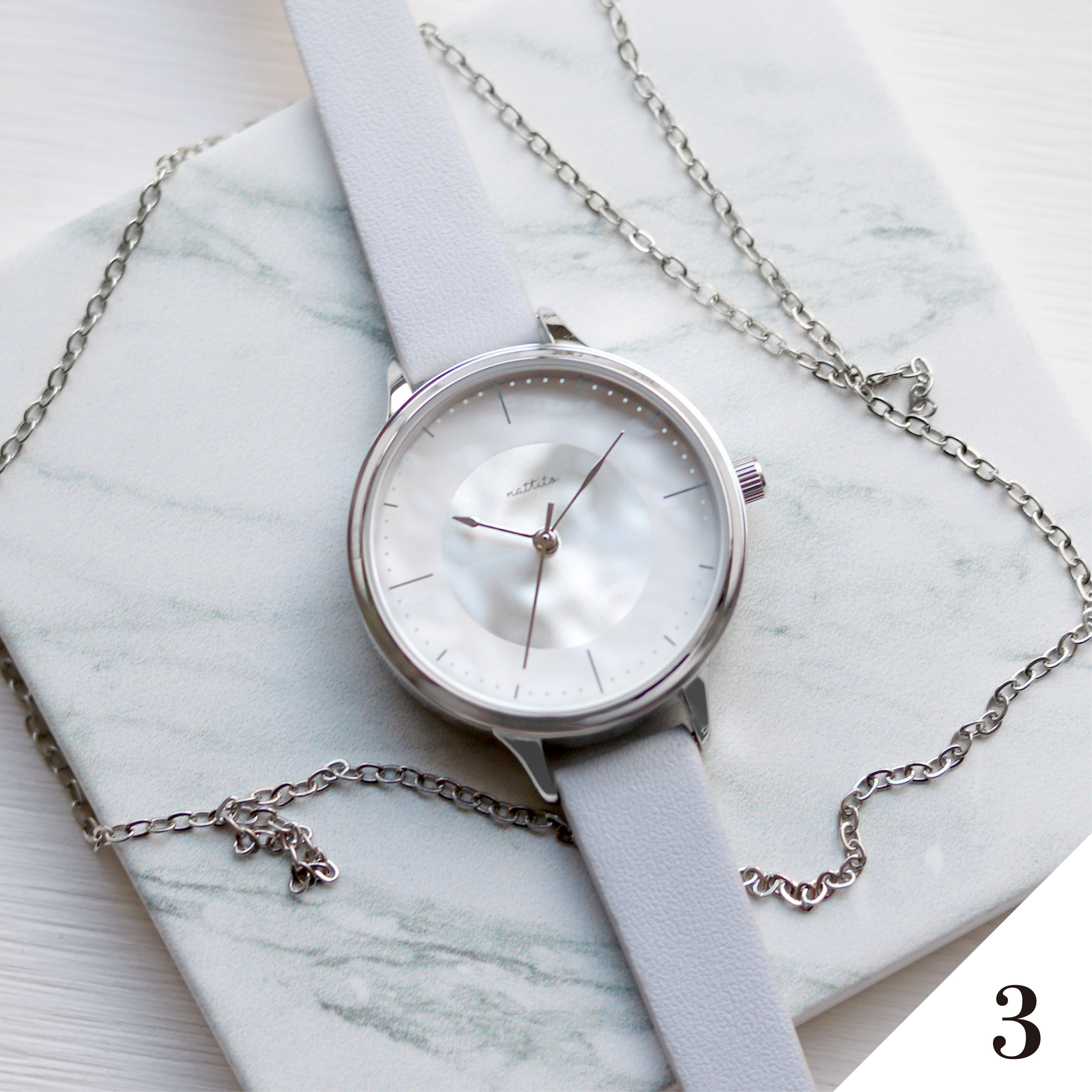水面のようなダイアルがポイントの腕時計