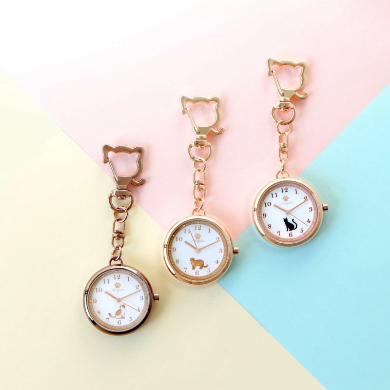 ネコの形のフックがかわいい!キーホルダーウォッチ