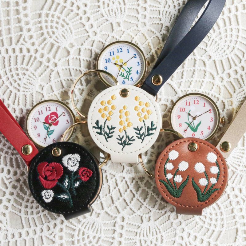 ストラップで鞄などに付けられるルーペウォッチ 使用時にはクルッと取り出してルーペにも時計にも。