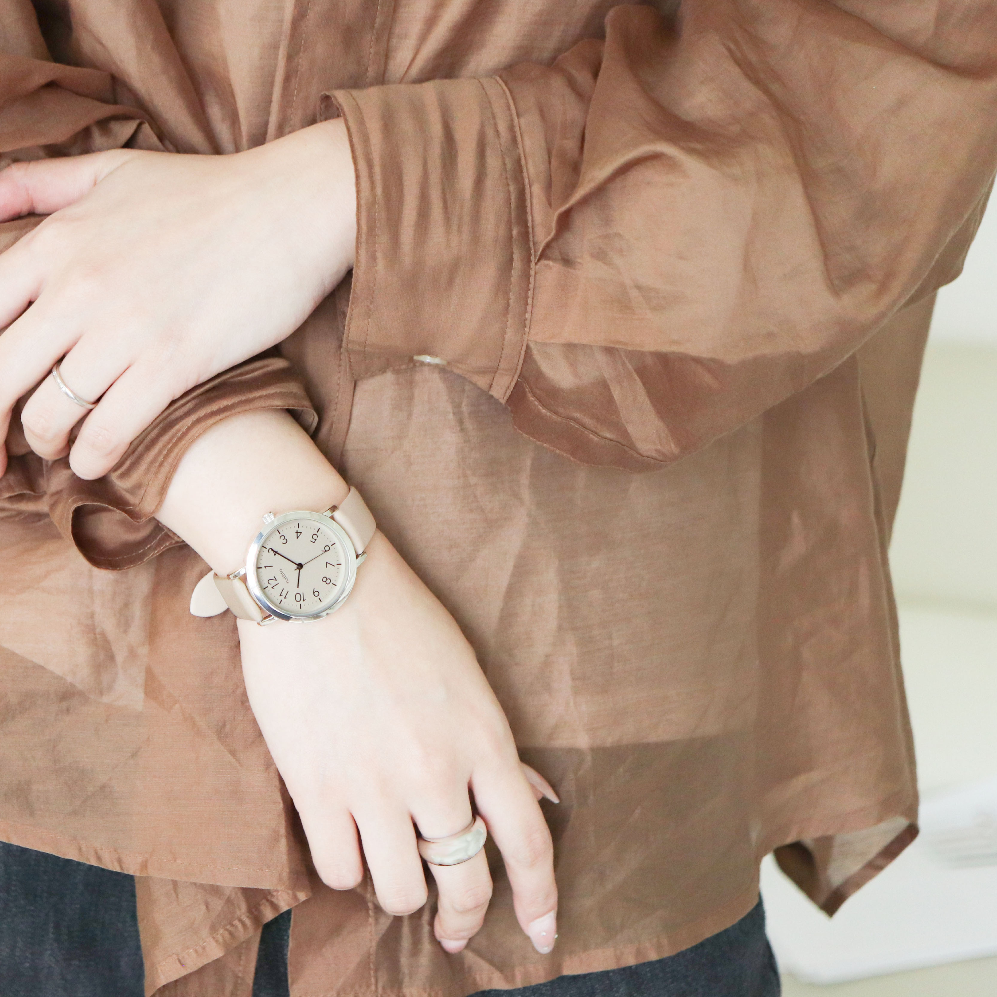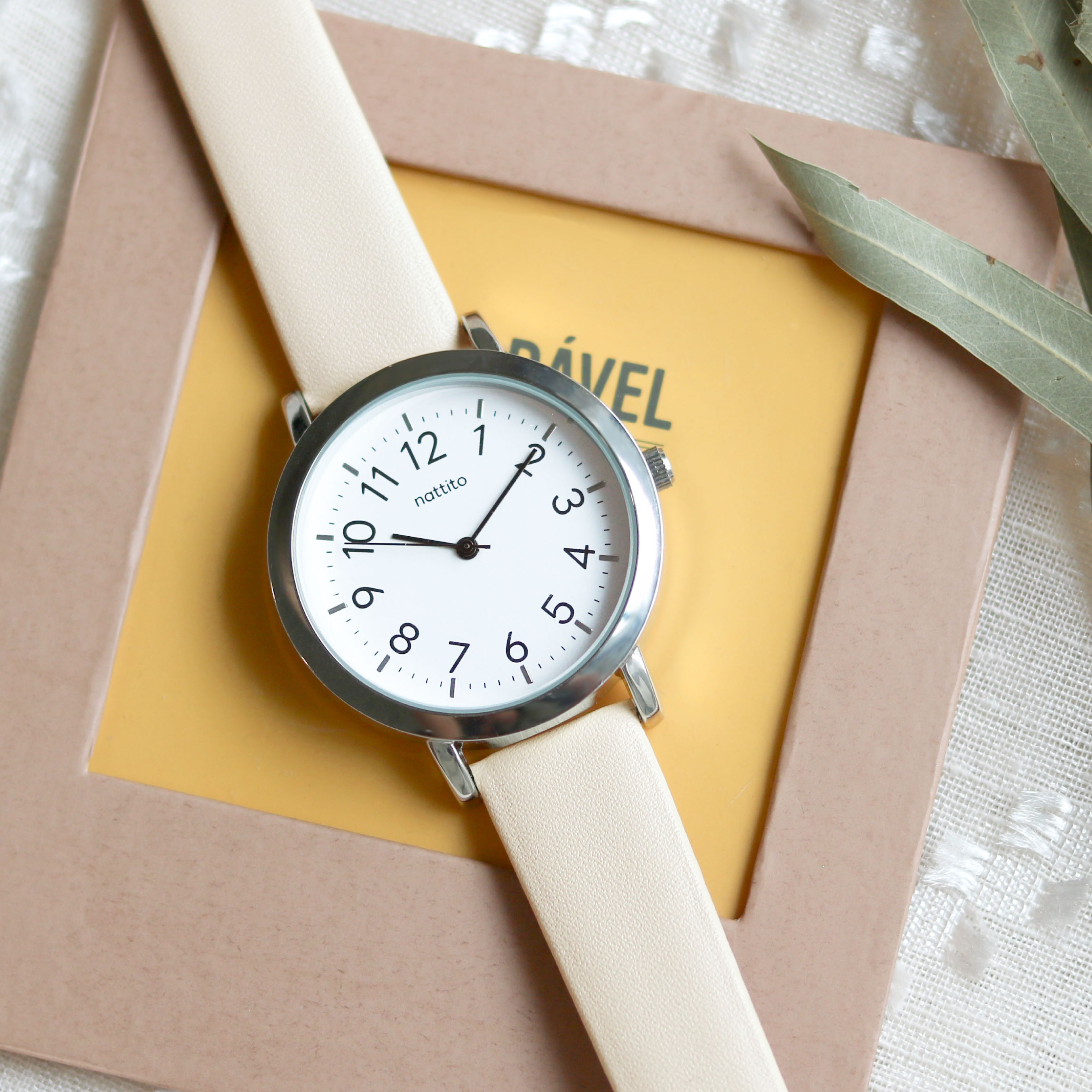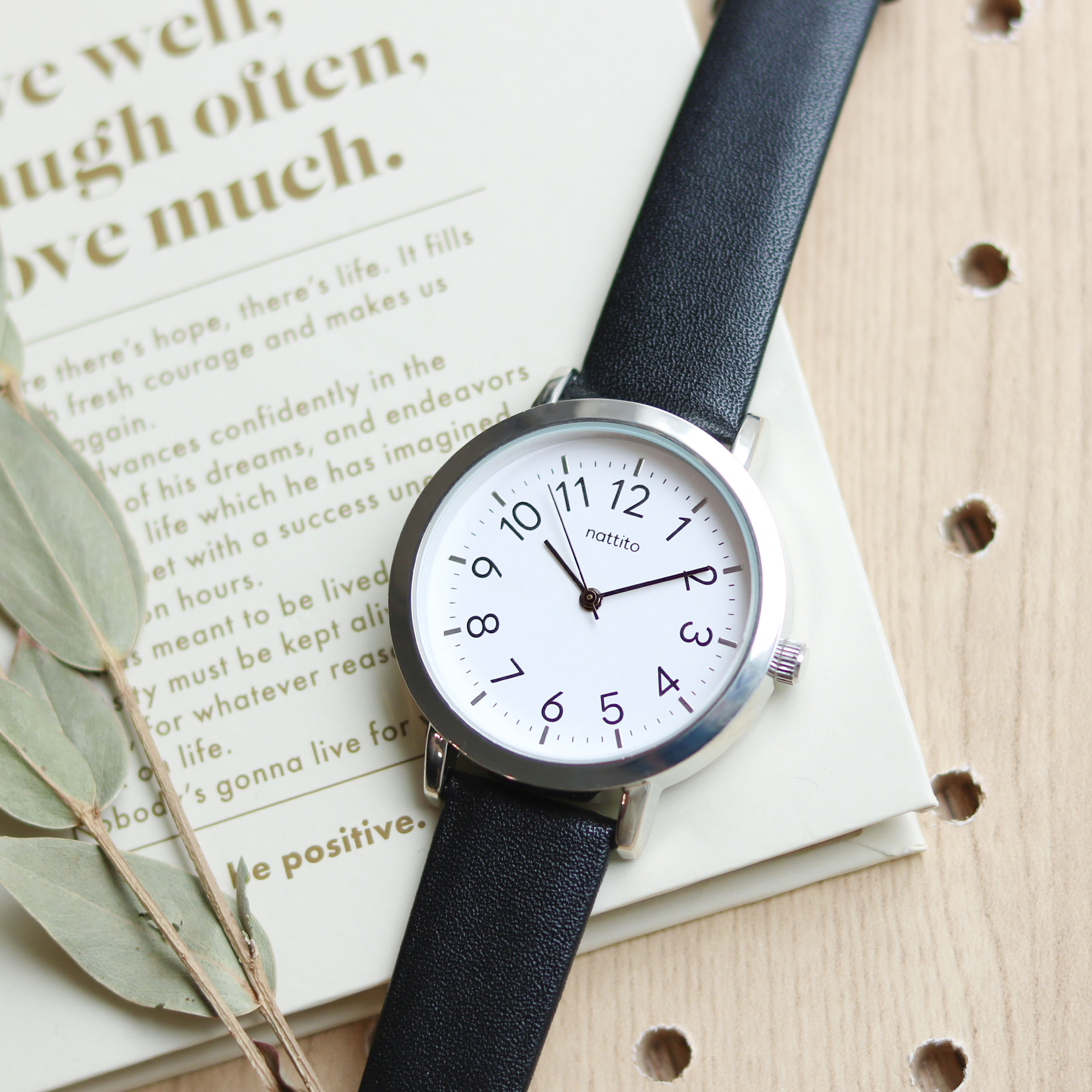 大きな文字盤で見やすいシンプルレザーウォッチ