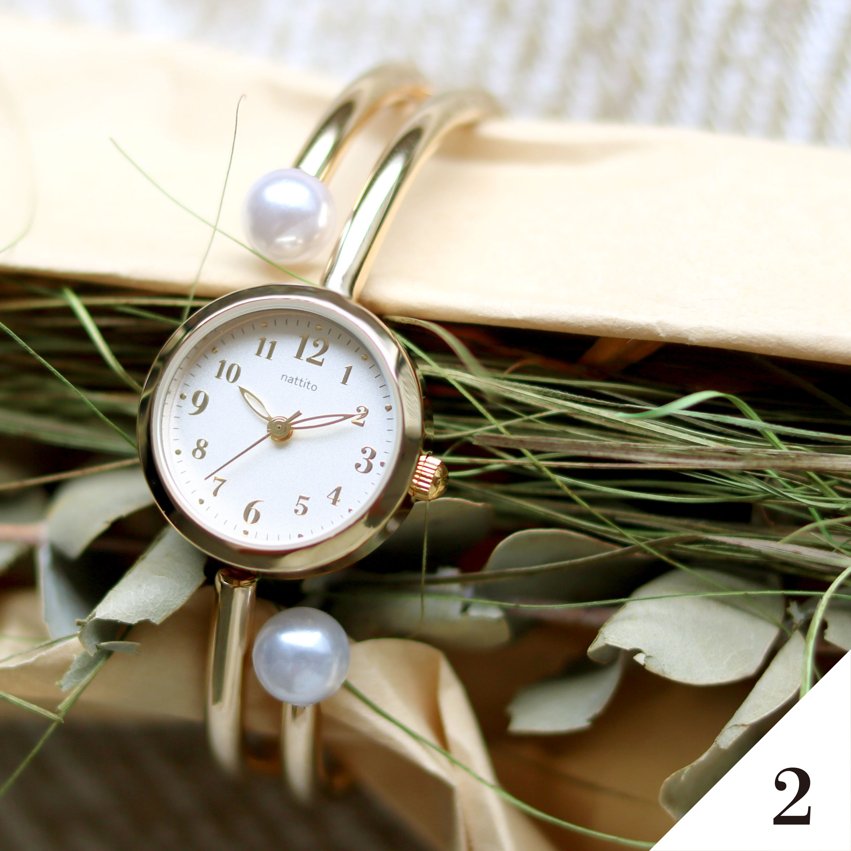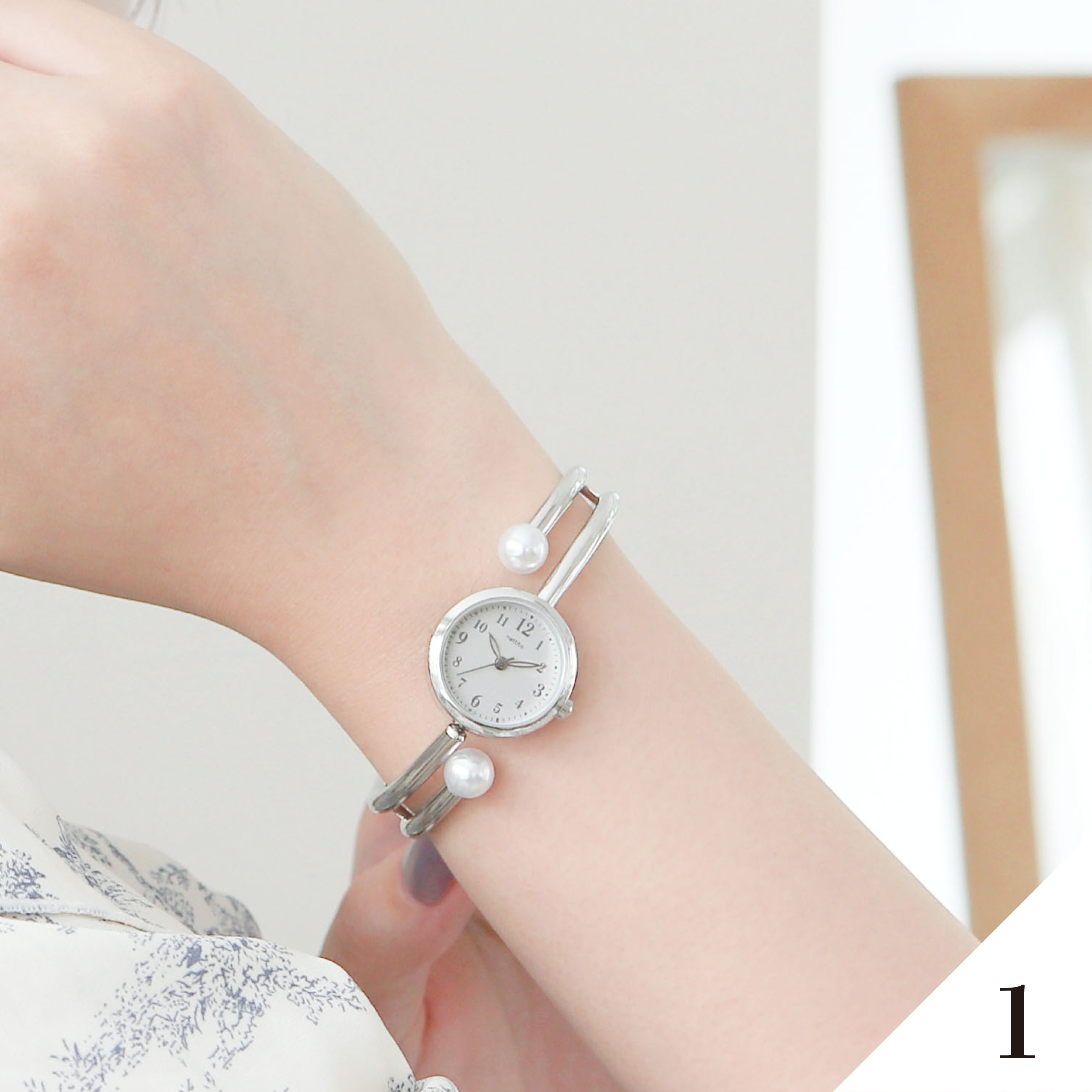 パールとメタルのおしゃれなバングル