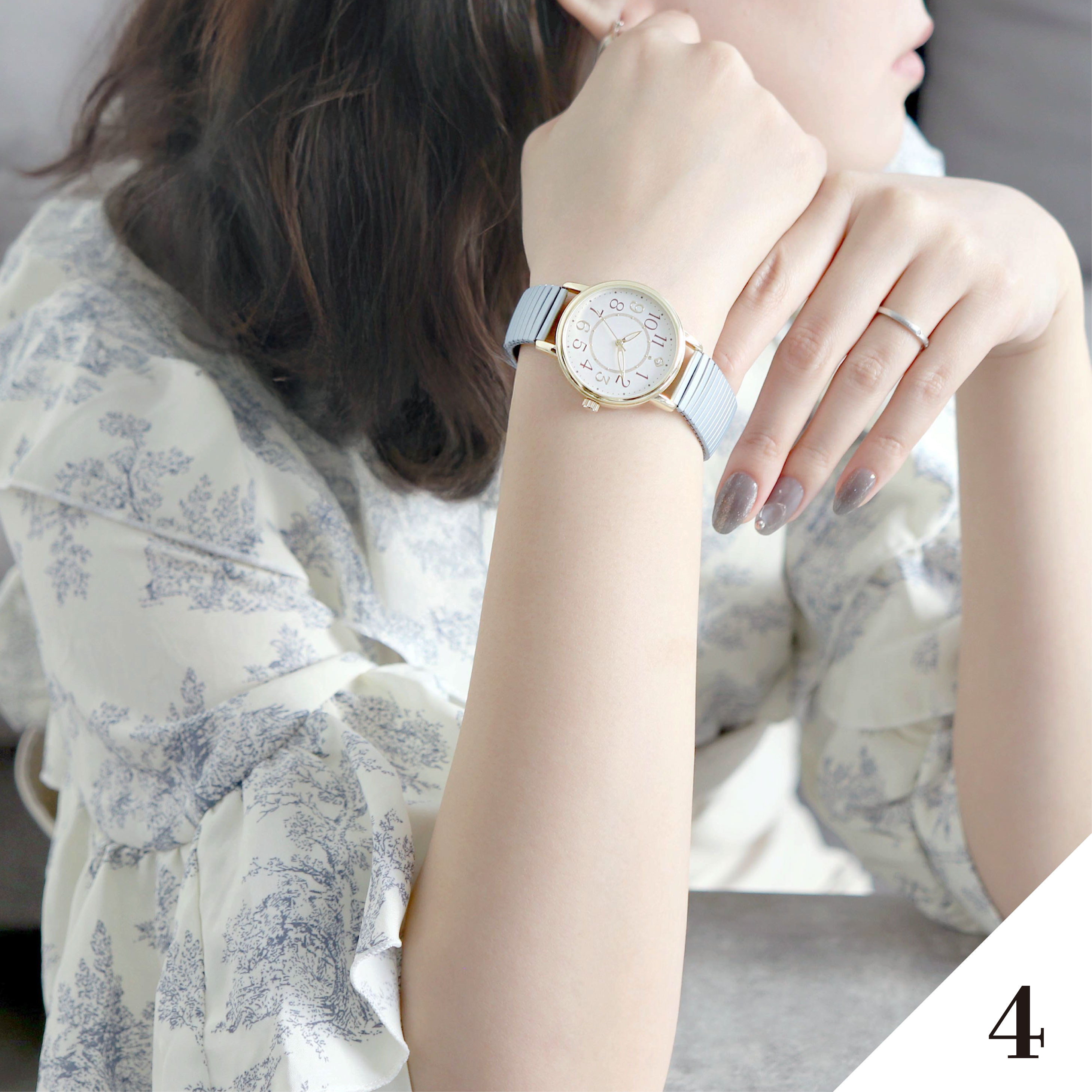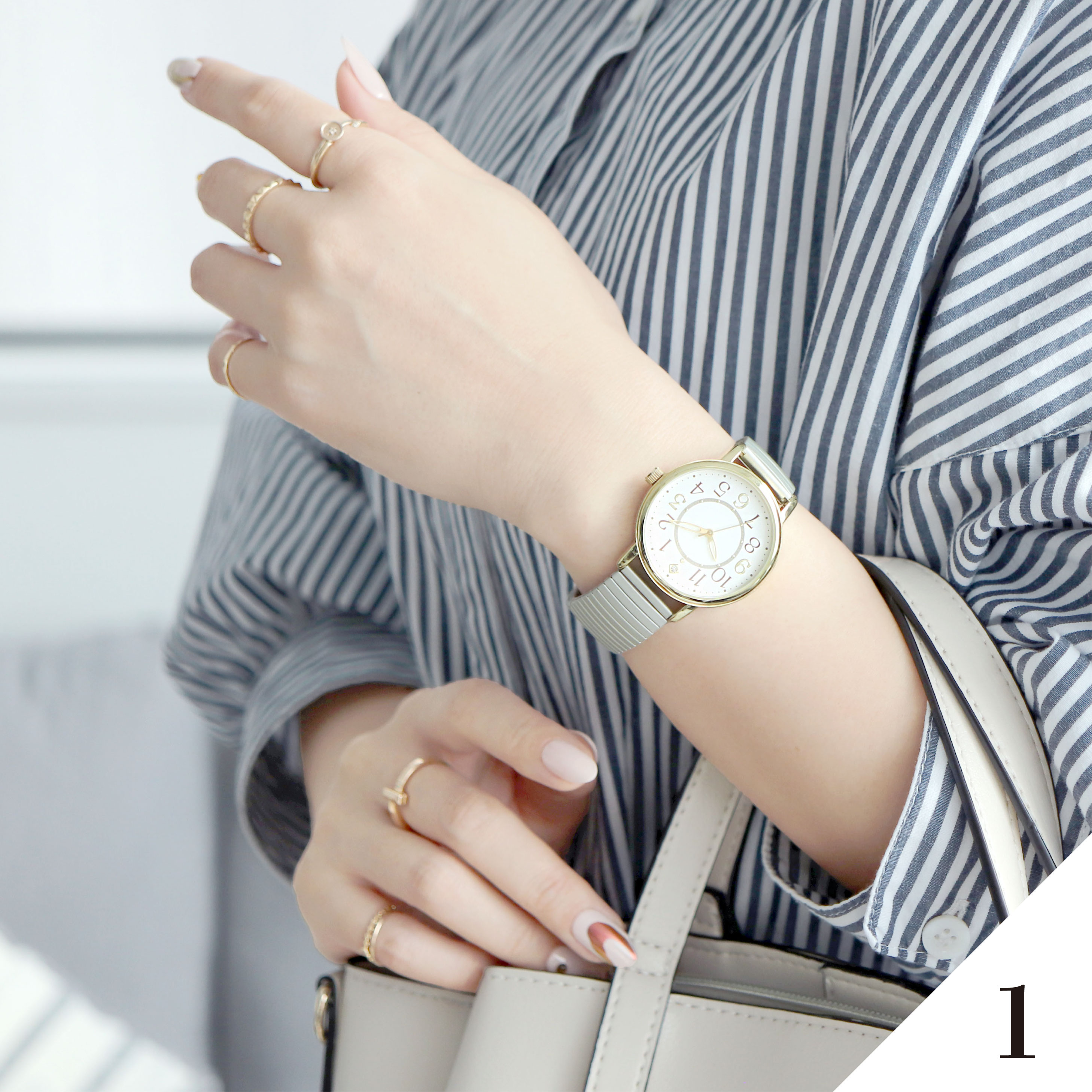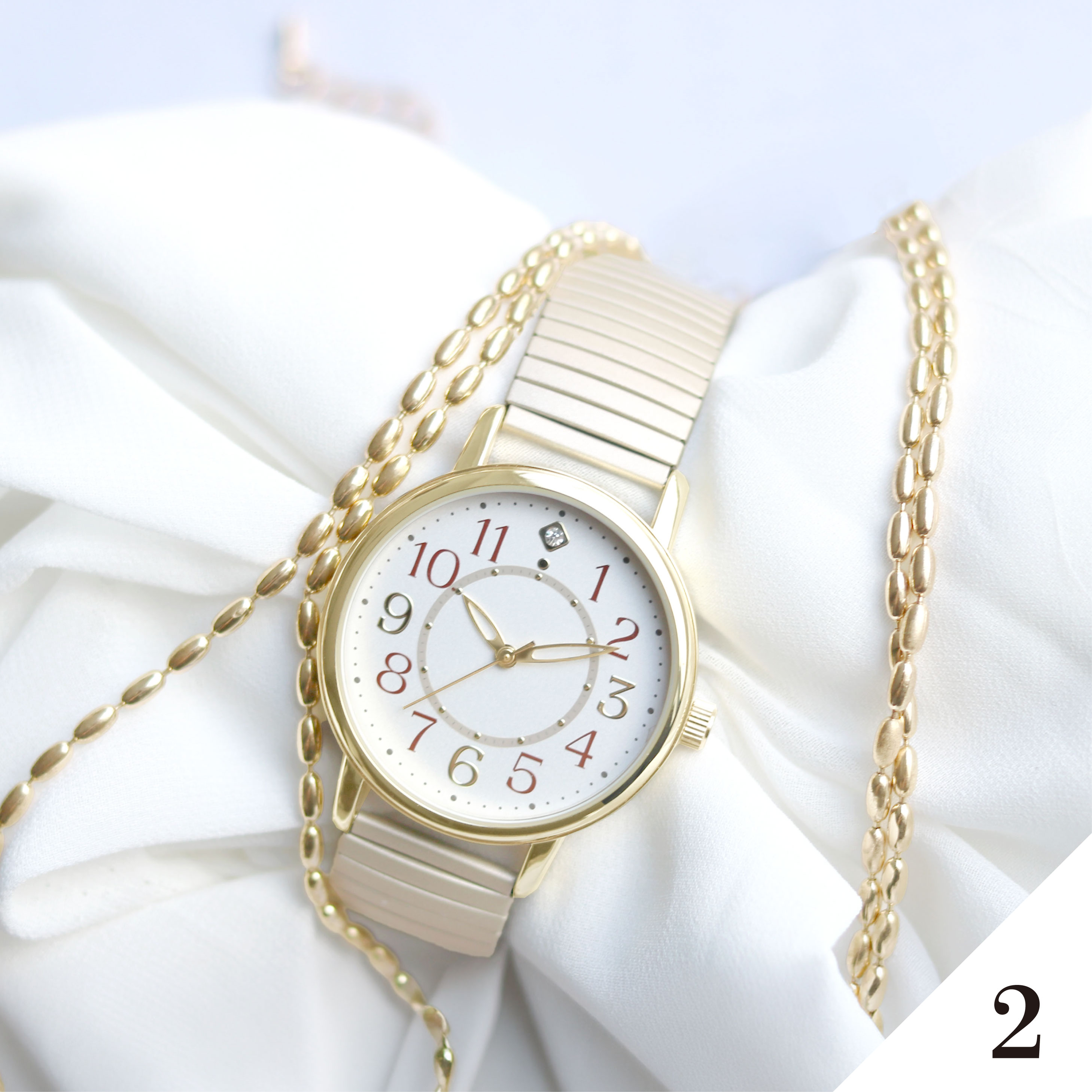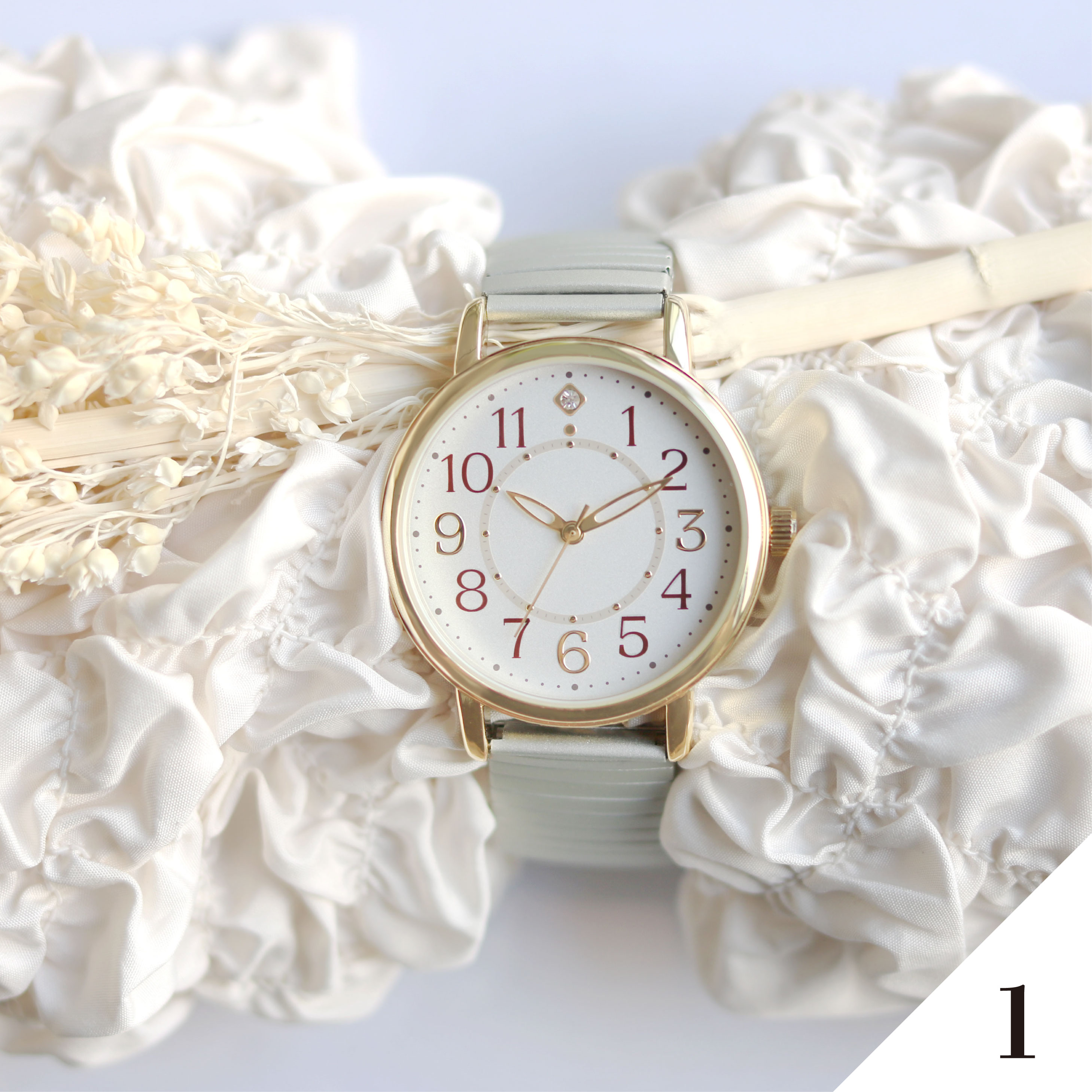 すっきり見やすい大き目文字盤!つけやすいじゃばらタイプの腕時計