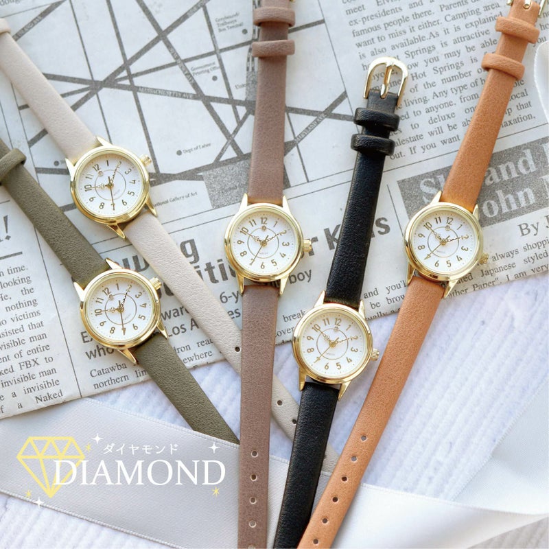 ダイアルにダイヤモンドをのせた高級感抜群の商品です。小さめのダイアルサイズでお仕事や学校生活にもピッタリです。