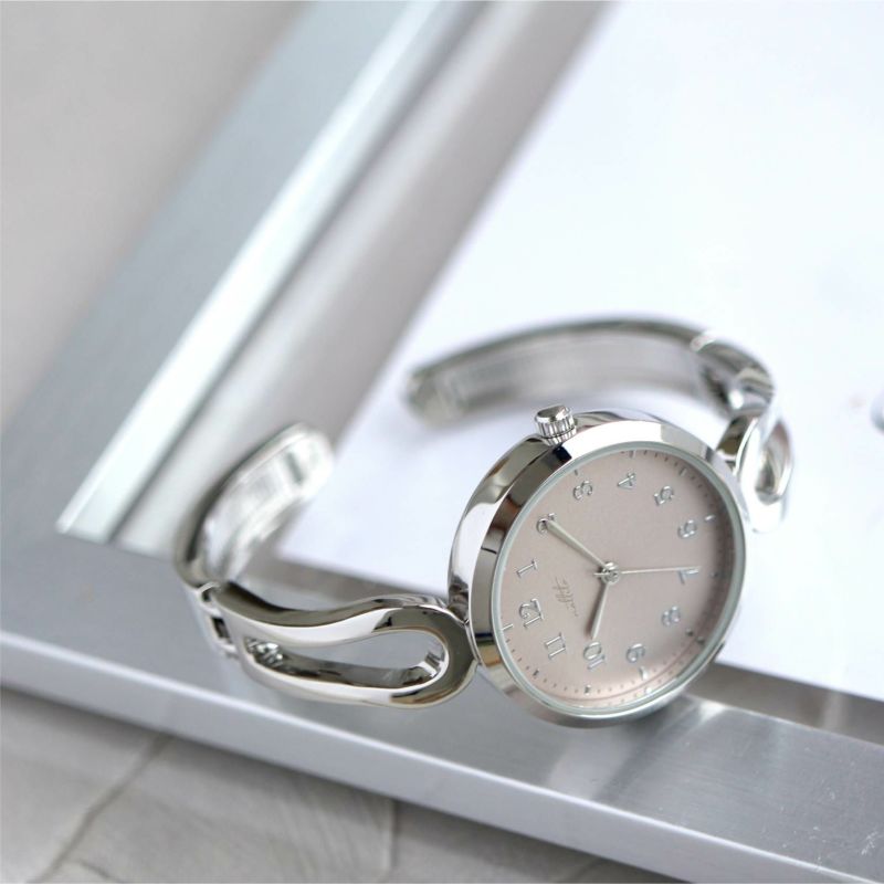 着脱らくらくなバングルウォッチ。アクセサリー感覚でおしゃれにつかえる、コーディネートに合わせやすいメタルカラー ※スライドギフトBOXはご利用頂けない商品になります。