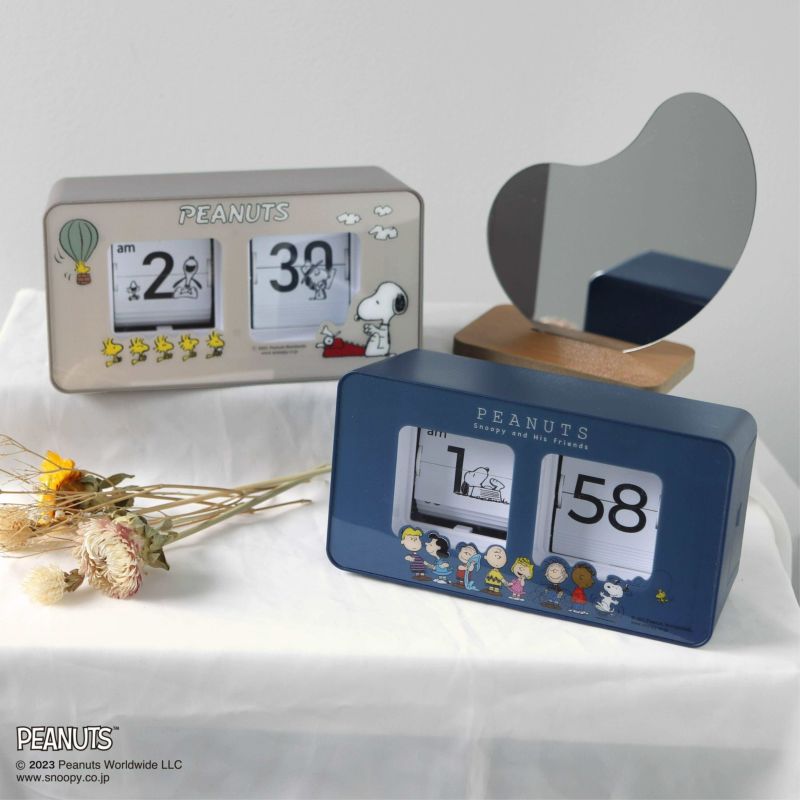パネルが回転しながら時刻を示すパタパタクロック。PEANUTSデザインのパネルがパタパタと回転しながら時間を刻みます。