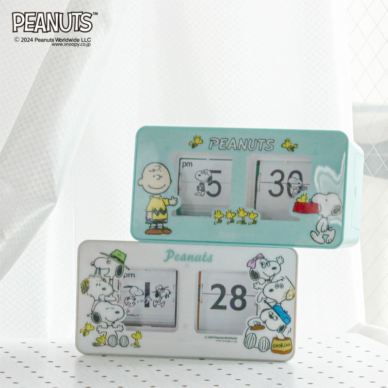 パタパタとパネルが回転しながら時刻を表示するパタパタクロック。 各パネルに可愛いキャラクターのアートが載っています。