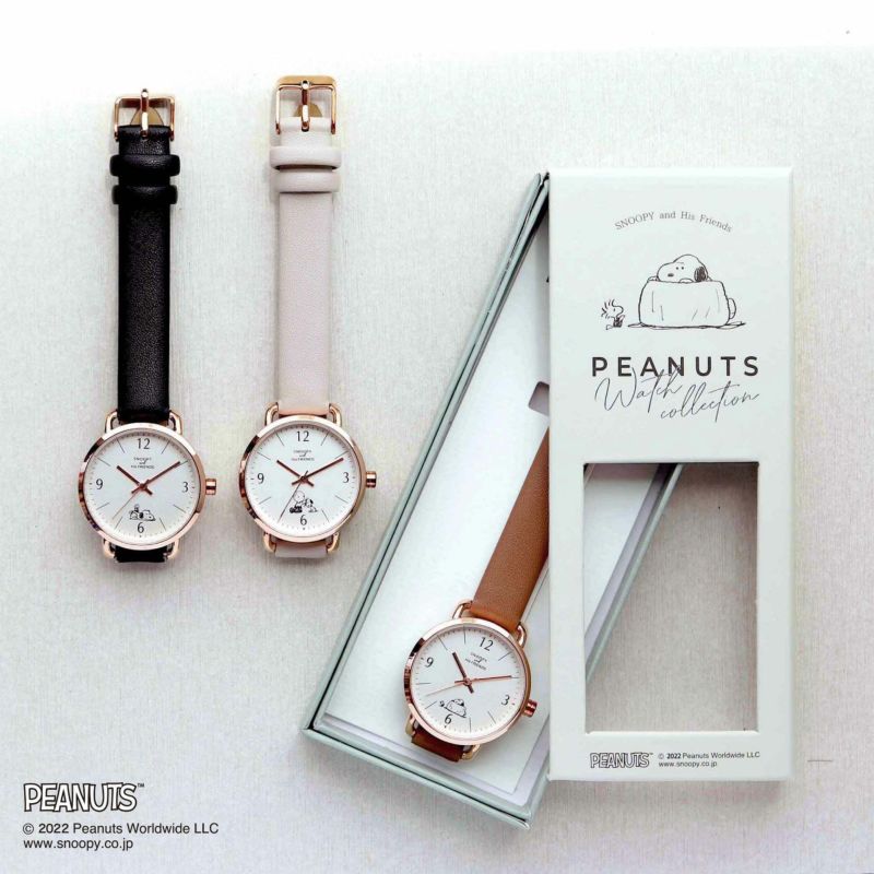 文字盤にピーナッツ・ギャングがプリントされた、高級感のあるラウンドラグの腕時計 BOXパッケージ付き