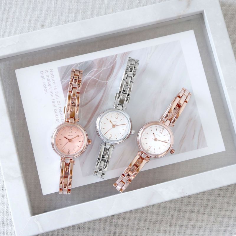 ケースサイズ:φ25mm ケース素材:合金 ケース厚み:約8.5mm ベルト全長:約160mm ベルト素材:合金 ベルト幅:8mm 腕回り最小:約約160mm ムーブメント:日本製 重さ:約35.0g
